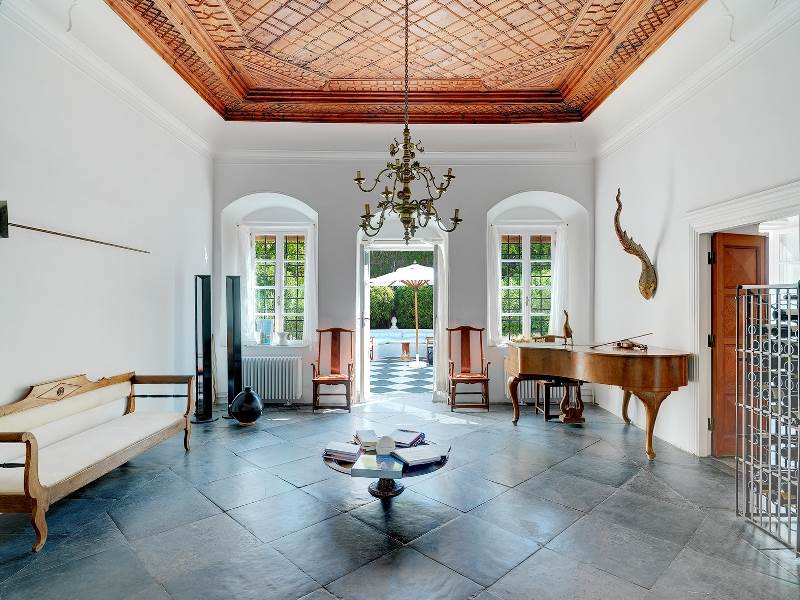 Ideally situated just a stroll away from the port of Hydra, this distinguished 18th-Century stone mansion was designed by Genovese architects as the home of a major ship-owning family. Traditional carved wooden ceilings and seven distinctive fireplaces feature throughout its 630 square meters of storied interiors.