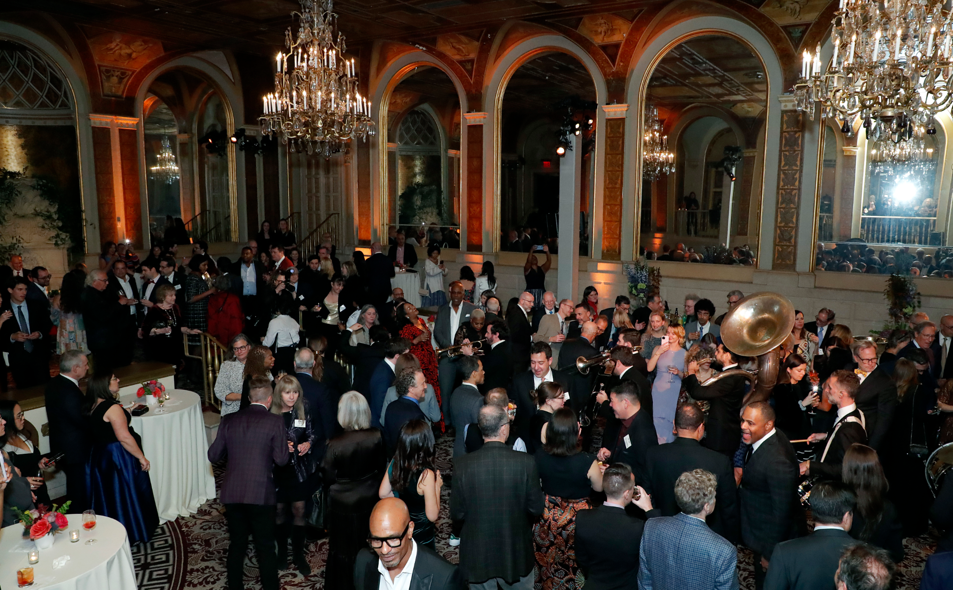 • A lively cocktail hour filled with NYPR’s beloved hosts and staff, members of the press, donors and members from this year’s honoree The Tow Foundation. The High & Mighty Brass Band led guests in a procession up to the main ballroom to begin the dinner and program.